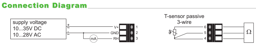阅读导致的湿度温度补偿在广泛的测量上有极好的精确度范围。相对湿度的模拟输出是4~20mA /线。被动温度输出可以,通过3线连接到外部的读出。易于安装和服务的插件是可能的。螺丝端子块和现场按钮校准